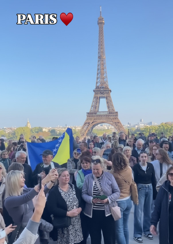 Меѓу многуте градови што се збогуваа со музичката легенда Халид Бешлиќ во саботата беше и Париз. Обожавателите се собраа пред Ајфеловата кула со знамиња на Босна и Херцеговина за да му оддадат почит на пејачот, а емотивното видео го сподели актерот Енис Бешлагиќ, кој ја започна иницијативата за збогувања низ целиот свет.