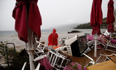 Драматични снимки пристигнуваат од Грција, особено од областа Волос и Пилион, каде поради поплавата многу автомобили завршија во морето.