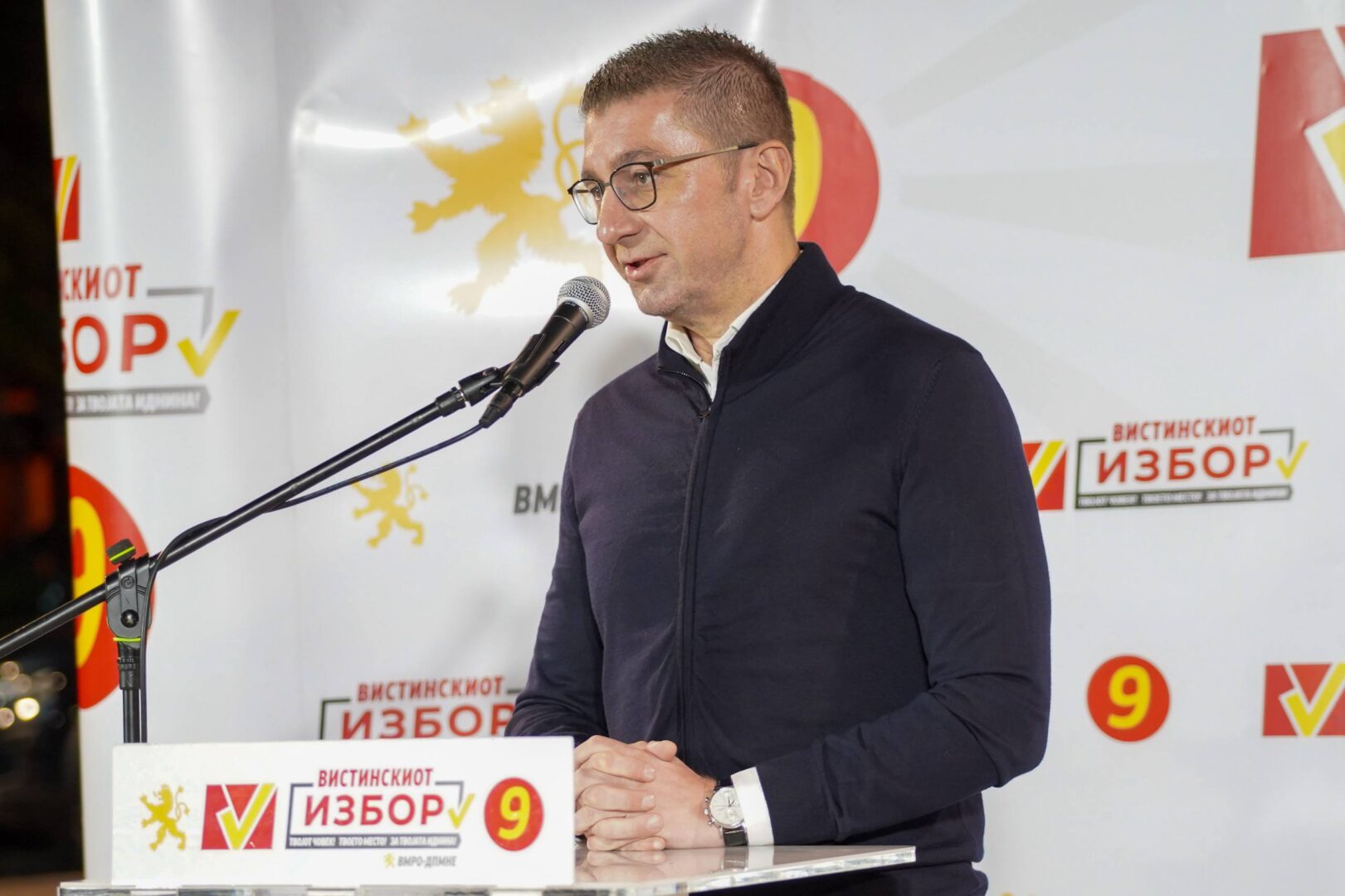 „Политиката не е црна кампања и не е со лаги да се доберат до власта. Политиката е да имаш цел, и план како да ја реализираш таа цел. Ние имаме план и многу стратешки цели како да ги реализираме, дел ги реализиравме, дел се реализираат, многу мал дел не успеавме да реализираме. Понекогаш додека ги реализиравме овие стратешки цели крваревме како ВМРО-ДПМНЕ и поднесовме жртва. Не беше лесно, многу ми беше тешко кога ги гледам нашите сопартијци од Тетово, Гостивар, од Струга, Чаир, Дебар и за тоа плативме цена и за тоа има жртва. И ние не бараме ништо, не бараме за возврат ништо затоа што имаме цел, ние бараме почит за жртвата којашто сме ја дале за друг, не ја добивме и тоа нема да го заборавиме. Сега да се фокусираме на 2 ноември масовно да излеземе, да тропнеме на секоја врата, да излеземе и да зокружиме број 9, за Дејан, за Орце и насекаде каде ВМРО-ДПМНЕ има свој кандидат“ нагласи Мицкоски.