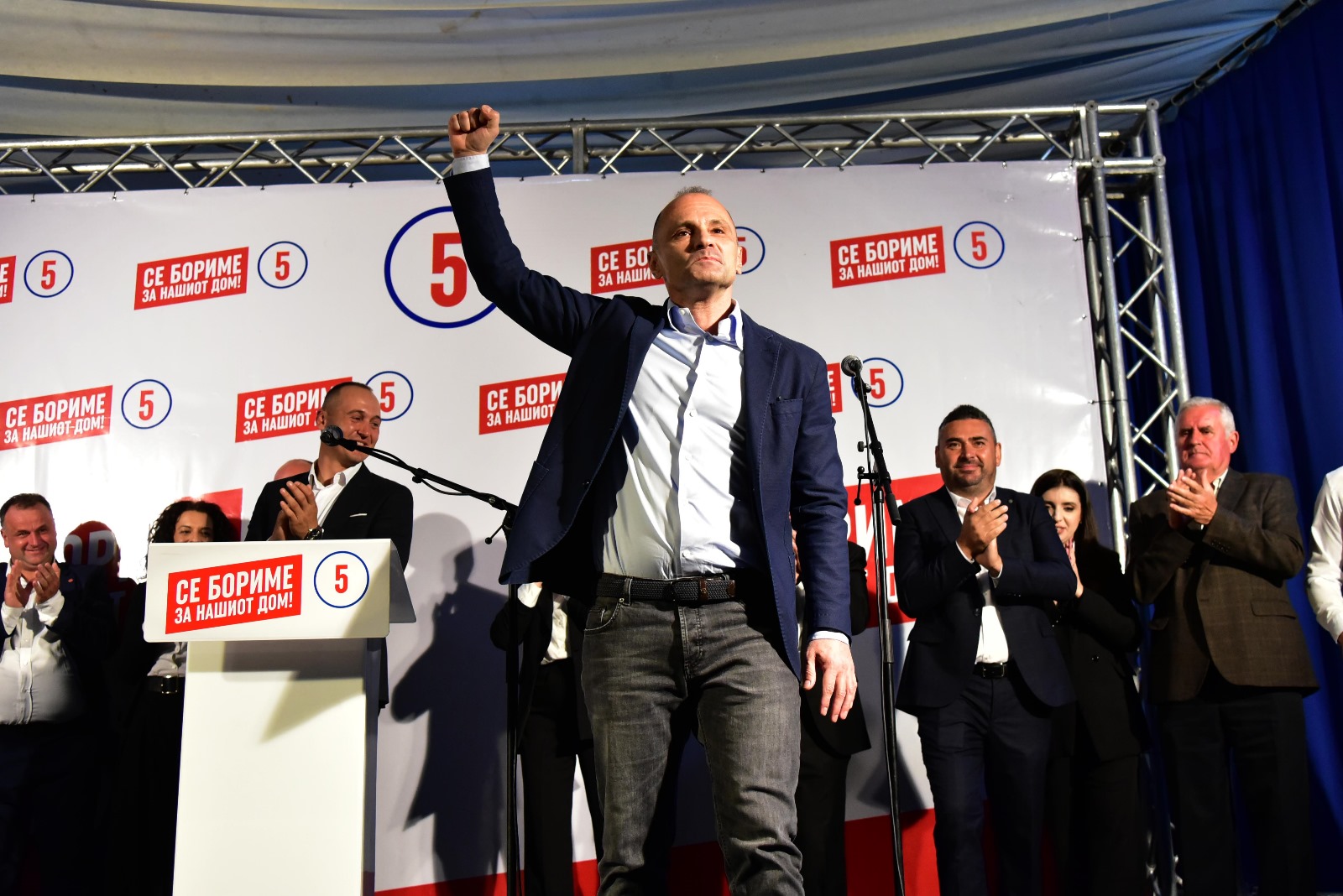 ,,Кога зборувам за нашите противници зборувам за една непринципиелна коалиција, која што е составена од, во суштина три политички партии, која што се обединила поради две главни причини, првата е желбата за власт, по било која цена. И втората е, патолошката омраза која што ја имаат кон ВМРО-ДПМНЕ. Тоа е коалицијата на СДСМ, на ДУИ, и политичката партија Левица. На некои места, оваа коалиција е формална, на некои полуформална, но во суштина, тоа е тој опозициски блок, кој што на овие избори излегува тотално без никаква програма“, вели Мицкоски.