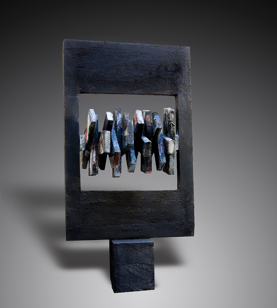Главниот ефект сега го презема целосноста на масивот на вертикалата со своите внатрешни кршења во наизменичното сложување на формите, во нагласената и незаобиколна игра на светлоста и на сенките. Воглавно, потиснувајќи ги облините, наклонува кон поостри геометризирани плохи (правилни парчиња дрво) кои ги напластува вертикално или создава врежани, издлабени одвојувања на формите во самата нивна релјефна поставеност. Таков пристап како да му служи на авторот да се ослободи од органската врзаност за волуменот, од укрупнување на формите и нивното волуминозно навлегување една во друга, префрлајќи се на микро план на ситнење на елементите во градењето на композицијата, што го доведе до дескриптивната сликовитост на обликот, го насочи кон цврстината на скулптурата, облиците ги сведе на некои основни елементи мултиплицирани и модифицирани низ слободната интерпретација. Во нив најде извор на системски интерпретации на неограничената моќ на мозаичното поставување или дефинирање на сегментите од целината, кои се движат од вдлабнати, цртачки организирани форми, преку суптилни тетоважи во вид на арабеска, колажно поставување на помали мозаични форми, до редење, умножување на исти или слични форми и до нивната разбранувана, разиграна поставеност во различни насоки.