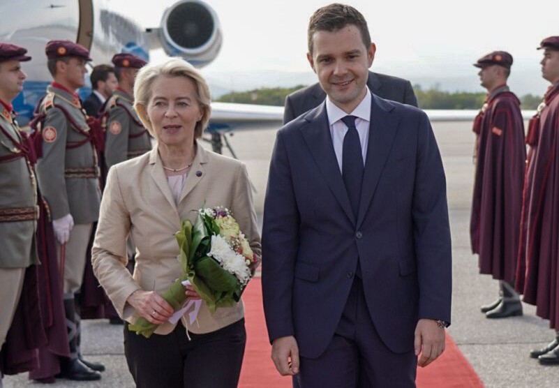 Претседателката на Европската комисија, Урсула фон дер Лајен, попладнево слета во Скопје. Министерот за надворешни работи и трговија, Тимчо Муцунски, рече дека на денешните средби очекува да се потврди поддршката за европската интеграција на Западен Балкан.