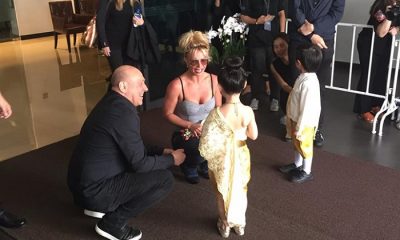 Поп-ѕвезда Бритни Спирс пристигна со приватен авион во Бангкок каде на аеродромот Дон Муанг ја пречекаа голем број фанови. Меѓу нив имаше и две деца облечени...