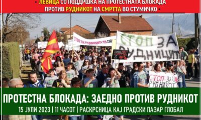Политичката партија Левица безрезервно ја поддржува протестната блокада на активистите од „Здрава Котлина” и струмичко која ќе се одржи на 15 јули во Струмица и која...
