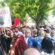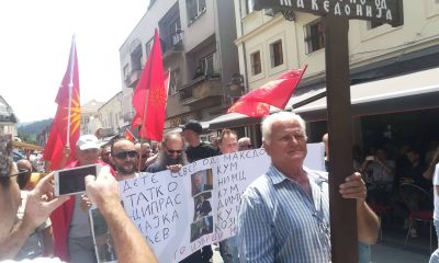 На протестите во Битола, демонстрантите извикуваат дека не го даваат името. Тие пеат патриотски песни а некои од нив носат транспаренти со крст што симулира дека...