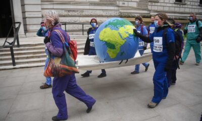 Активистите за климатски промени се собраа пред зградата на британскиот парламент пред Денот на планетата Земја за да повикаат на акција против глобалното затоплување и да...