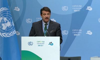 Заменик-министерот за животна средина и просторно планирање, Јани Макрадули, на попладневната пленарна сесија на 23. Конференција на страните на УНФЦЦЦ (СОР 23), информира за напредокот на...