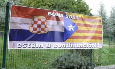 Покрај катедралата во Мостар, под илустрацијата на знамињата на Хрватска и Каталонија, се појави порака: „Среќно, ние сме следни“, пренесува порталот „Блесак“. Полицијата го отстрани транспарентот...