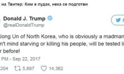 Претседателот на САД, Доналд Трамп, ја продолжува вербалната војна со лидерот на Северна Кореја, Ким Јонг-ун. Трамп на „Твитер“ напиша дека Ким е очигледно лудак на кој не...