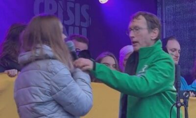 Говорот на Грета Тунберг на големиот протест за климата во Амстердам вчера беше прекинат од маж што упадна на бината. Човекот рече дека „дошол овде за...