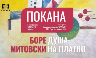 Самостојната изложба на Боре Митовски, со наслов „Душа на платно“, ќе биде отворена на 13 ноември (понеделник) во Уметничкиот центар АРТ ХАБ во Скопје, ГТЦ, 2....