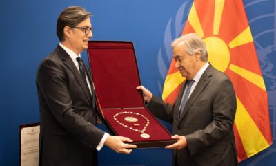 Претседателот Стево Пендаровски, во рамки на учеството на Генералното собрание на ОН, вчера попладне во Њујорк ја одликуваше Организацијата на Обединетите Нации со Орден на Република...