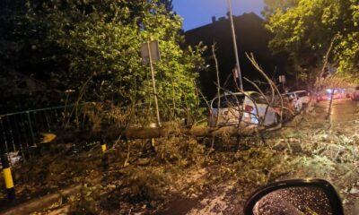 Силно невреме денеска го зафати Загреб, каде ветрот корнеше дрвја, носеше покриви, а обилниот дожд ги поплави улиците. Снимен е трагичен момент во кој силниот ветер...