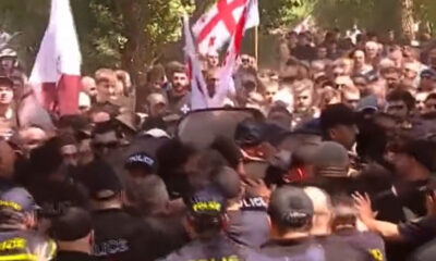 Толпа од илјадници демонстранти против ЛГБТ+ вчера упадна на парадата на гордоста во главниот град на Грузија, Тбилиси. Хомофобите палеле знамиња со виножито и се степале...
