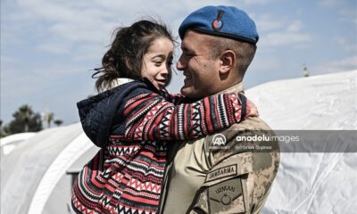 Турските војници им помагаат на децата преживеани од земјотресите на 6 февруари да се прилагодат на нивните нови привремени шаторски домови во јужната турска провинција Искендерун....