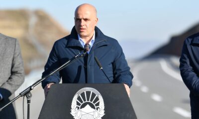 Премиерот Димитар Ковачевски, министерот за транспорт и врски, Благој Бочварски, и директорот на ЈП за државни патишта, Ејуп Рустеми. денеска присуствуваа и говореа на настан по...
