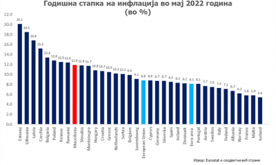 Целосно објавените податоци за инфлацијата во мај 2022 година ја потврдија констатацијата дека Македонија е меѓу државите коишто имаат највисока инфлација во рамки на Европската Унија,...