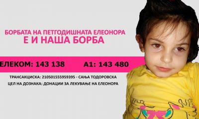 Елеонора Тодоровска има пет години и се бори со леукодистрофија, ретка генетска болест која се јавува кај едно од 100.000 деца. Од дете со совршен развој,...