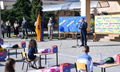 Претседателот на Владата, Зоран Заев, и министерката за образование и наука, Мила Царовска, придружени од градоначалникот на општина Карпош, Стефан Богоев, се обратија по повод првиот...