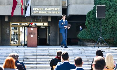 Претседателот Стево Пендаровски денеска се обрати на првиот академски час за бруцошите на Правниот факултет „Јустинијан Први“ во Скопје. На студентите им порача дека пред нив...