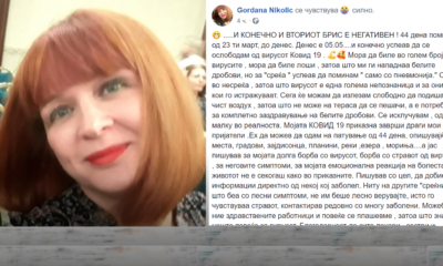 Докторката од Куманово, Гордана Николиќ, која пред повеќе од еден месец на својот профил на „Фејсбук“ напиша дека има коронавирус, денеска соопшти дека веќе и на...