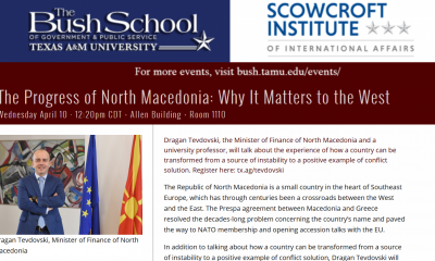 Министерот за финансии, Драган Тевдовски, денеска ќе зборува на Bush School of Government and Public Service, на универзитетот во Тексас – А&M. Станува збор за една...