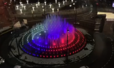 Во чест на посетата на рускиот преседател, Владимир Путин, фонтаната на Славија од синоќа е во боите на српското и руското знаме. Ова на својот профил...