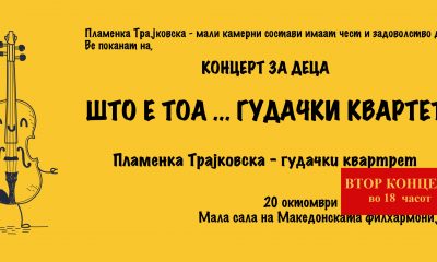 Поради огромниот интерес и распродадениот прв концерт, „Пламенка Трајковска – гудачки квартет“ го најавуваат својот втор концерт со наслов „Што е тоа… гудачки квартет“ на 20...