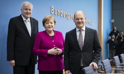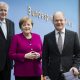 Канцеларката на Германија и претседател на Христијанско-демократската унија (ЦДУ), Ангела Меркел, претседателот на сестринската Христијанско-социјалната унија (ЦСУ), Хорст Сихофер, и претседателот на СДП, Олаф Шолц, го...