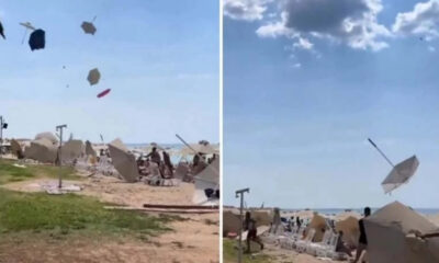 Туристите кои вчера ја посетија плажата во грчкото одморалиште Неа Флогита доживеаја необична сцена кога ветрот одеднаш ги разнесе чадорите на плажата. Видеото од оваа необична...