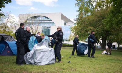 Полицијата во Берлин почна со отстранување на пропалестинскиот камп поставен пред германскиот парламент во петокот од активисти кои бараат од владата да го прекине извозот на...