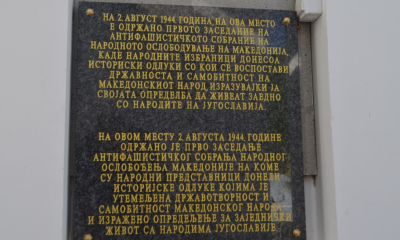 Во манастирот Прохор Пчински во Република Србија денеска е поставена спомен плочата за одржувањето на ова место на првото заседание на АСНОМ на 2 август 1944...