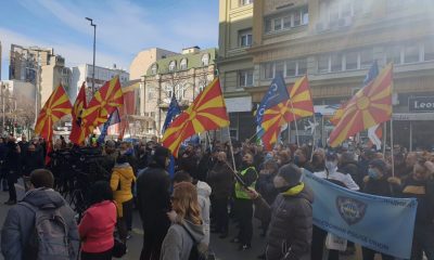 Сојузот на синдикатите ја блокира улицата пред седиштето на Организацијата на работодавците во центарот на Скопје во знак на незадоволство од нивниот предлог за методологијата на...