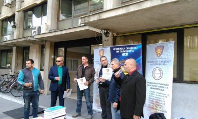 Претседателот на Независниот синдикат на полицајците Гоце Делчев-Тодев, заедно со претставници на редовната, воената и шумската полиција наздрави со чаша шампањ за официјализирањето на соработка со...