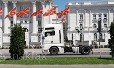 Со вклучени сирени во знак на револт камионџиите излегоа на протест со своите товарни возила во центарот на Скопје за да испратат порака до надлежните да...