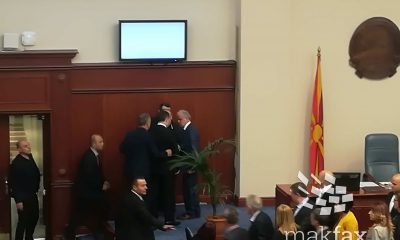Пратеникот од ВМРО-ДПМНЕ, Никола Груевски, го удри претседателот на Собранието, Талат Џафери, во собраниската сала. Тој со удирање врз масата бараше прекинување на седницата, му ја...