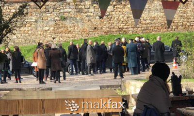 Лидерот на ГРОМ Стевче Јакимовски беше првиот кој пристигна пред платото на црквата Свети Спас. По него пристигна дел од делегацијата на Владата односно министерките Славјанка...