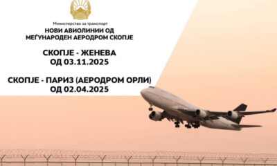 Од Меѓународниот аеродром „Скопје“ се воведуваат уште две нови авиолинии: Скопје – Женева Скопје – Париз (аеродром „Орли“) Овие две дестинации се воведуваат на барање на...