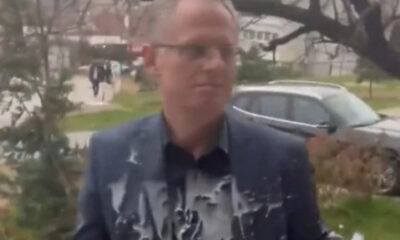 Активисти на вонпарламентарната Социјалдемократска партија на Косово (ПДС) фрлаа чоколадна торта и милкшејк кон вицепремиерот задолжен за дијалог со Белград, Бесник Бислими. На видеото од нападот...
