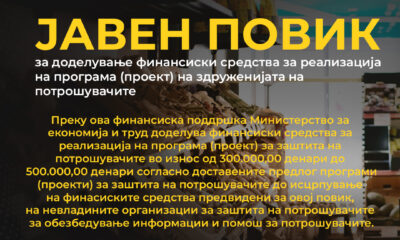 Министерството за економија и труд, во согласност со својата посветеност на заштита на правата на потрошувачите, денеска објави јавен повик за доделување финансиски средства за реализација...