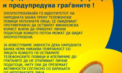 Измамници мамеле граѓани преку телефон, претставувајќи се во име на Народна банка. Од Народната банка уверуваат дека нивни претставник или вработен, во ниту еден случај нема...