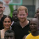 Британскиот принц Хари им се придружи на нигериските спортисти на теренот во егзибициски одбојкарски натпревар во Абуџа за време на тридневната посета на африканската земја со...