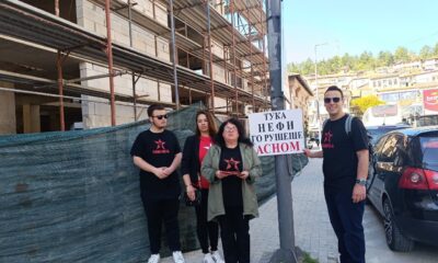 „Активистите на Левица во Охрид поставија табла на нелегалниот објект на бизнисменот од ДУИ, Нефи Усеини. Оваа герила акција го симболизира молкот на институциите на локално...