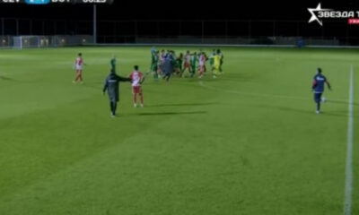 Пријателскиот натпревар меѓу Црвена Звезда и Ботев Враца беше прекинат во 67. минута поради хаотични сцени на теренот кога се степаа фудбалерите на двете екипи. 😮...