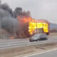 Голем пожар избувна на автопатот, на делницата Ниш – Лесковац, кога се запали приколка. Засега не се знае дали има повредени. Пламенот е огромен, а извира...
