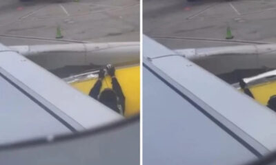 На TikTok се појави видео на кое се гледа како работник врши одржување на левото крило на авионот пред полетувањето на меѓународниот аеродром во Нешвил додека...