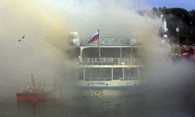Огромен пожар во руско пристаниште на Азовското Море. Видеата на социјалните мрежи, геолоцирани од Си-ен-ен, покажуваат густ, темен чад како лебди над градот. Едно видео покажува...