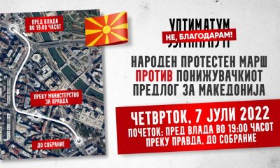 „Нема враќање чекор назад. Нема отстапување од Македонија. Денес продолжуваме, масовно, мирно и гордо во 19:00 часот пред Влада, преку Министерство за правда каде ќе порачаме...