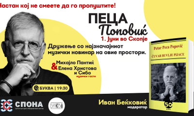 Најзначајниот музички новинар во регионот, легендарниот рок-критичар Петар (Пеца) Поповиќ, некогашен уредник на влијателните списанија „Џубокс“ и „Рок“, на 1 јуни, во 19.30 часот, во кафе-книжарница...