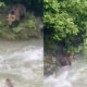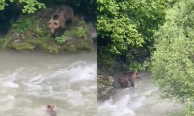 Жители на тетовското село Бродец споделија снимка на која се гледа како мечка се обидува да спаси младенчиња, кои паднале во реката Пена. Од видеото се...